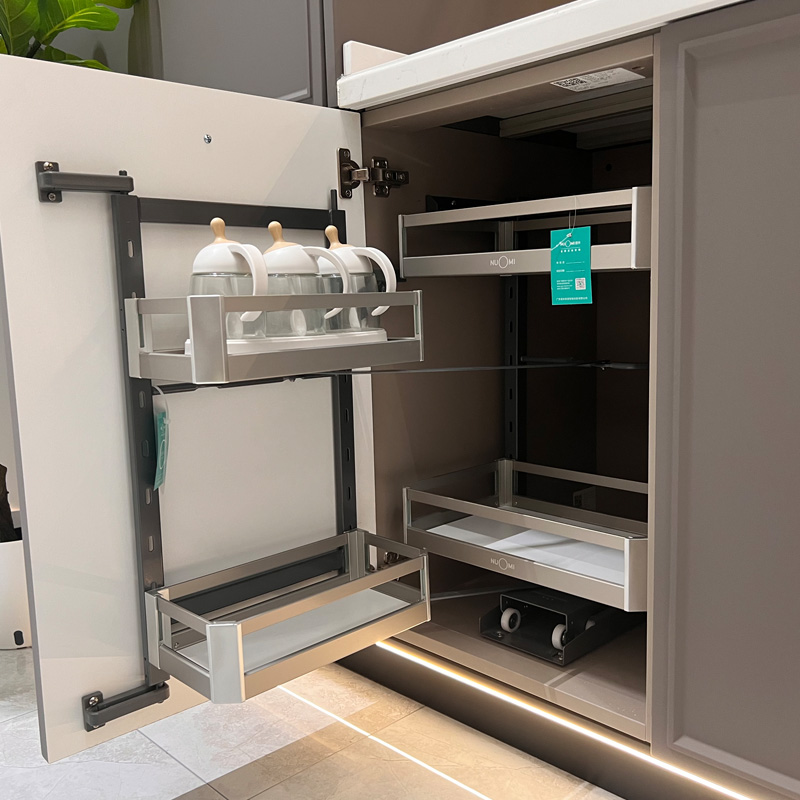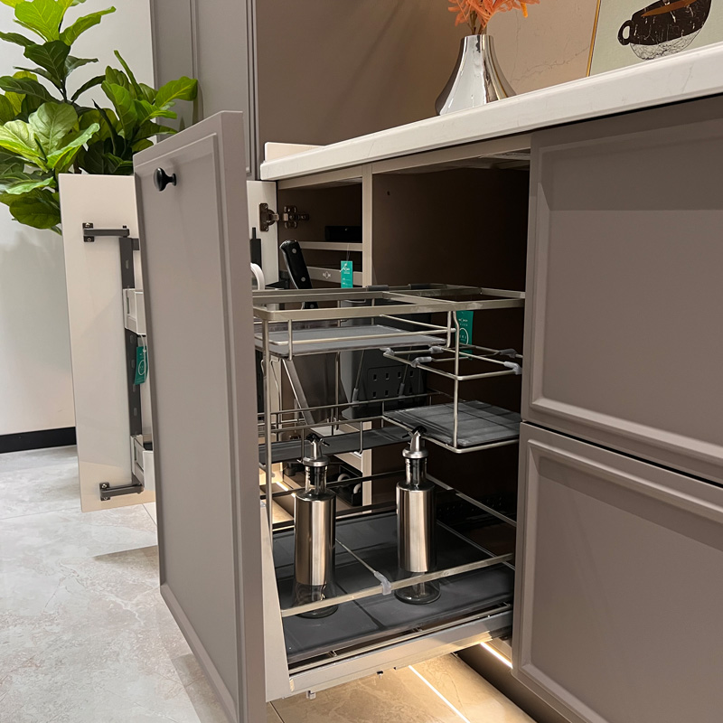 Funksjonell maskinvare kan velges i henhold til dine skikker og livsstil. Oppbevaringsplassen kan være stor med passende funksjonell maskinvare, gjør kjøkkenet ditt alltid rent og ryddig.