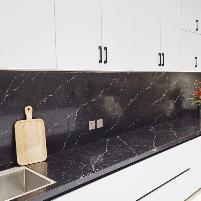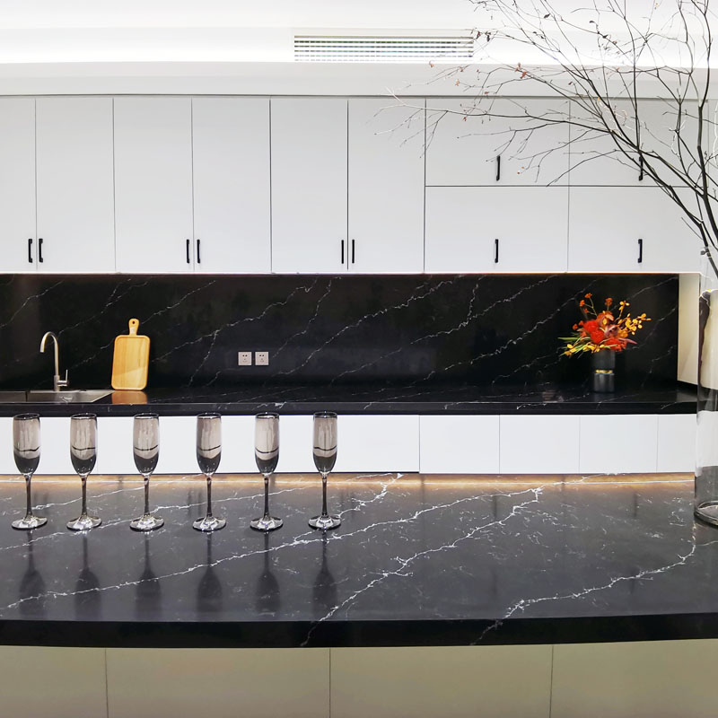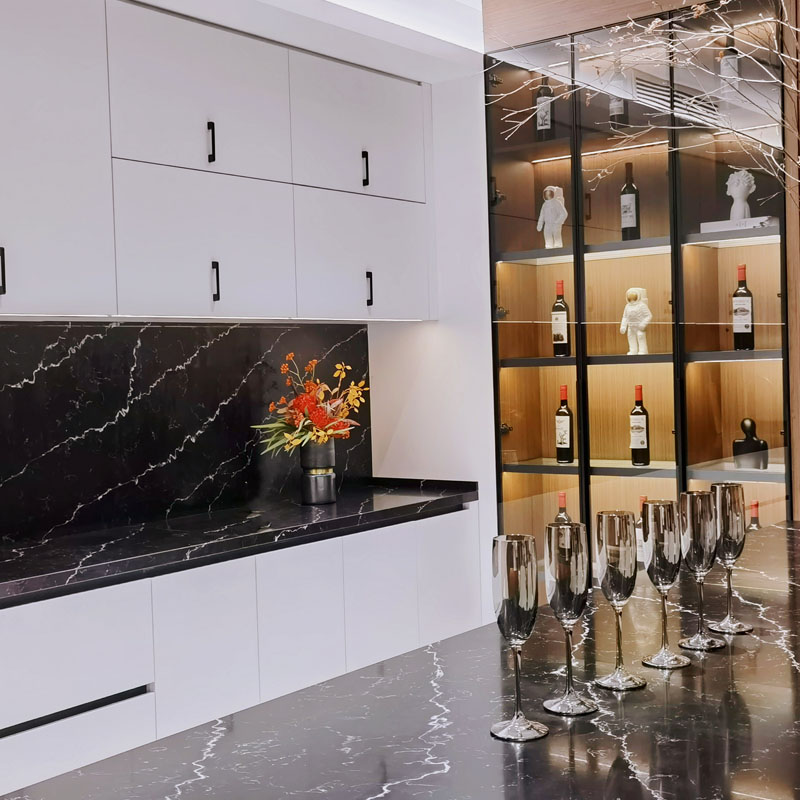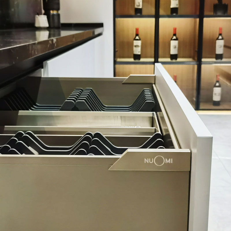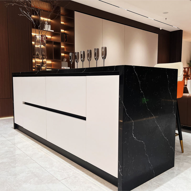 A: Denne serien bruker design med gratis håndtak for kjøkkenskap, for å være enkelt å vedlikeholde, har vi andre håndtaksstiler tilgjengelig, vennligst kontakt sales@sinoah.com.cn for å få katalogen.