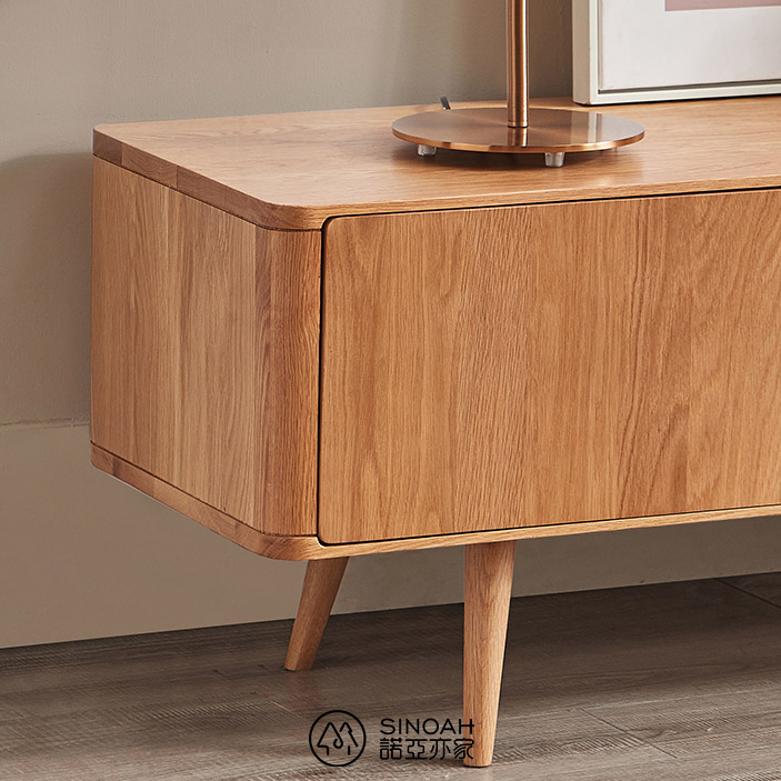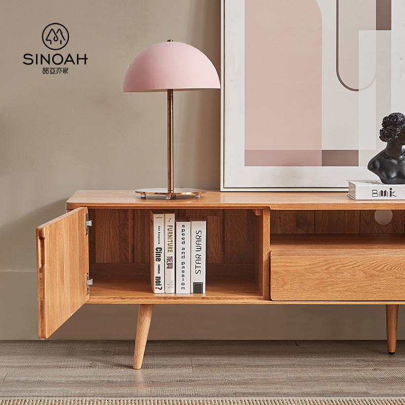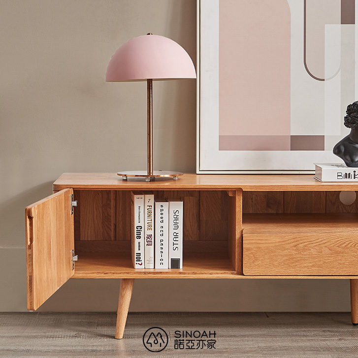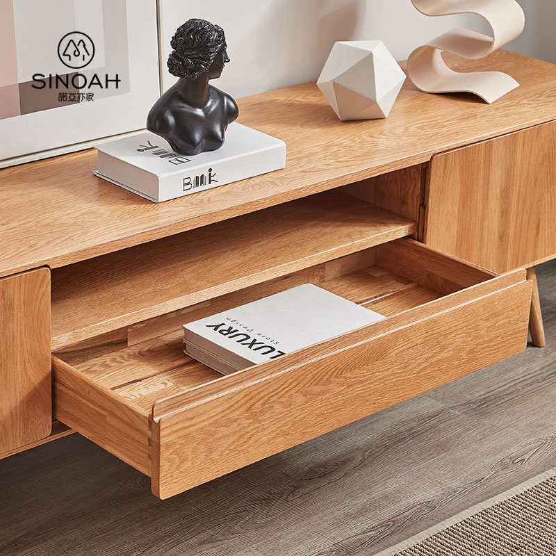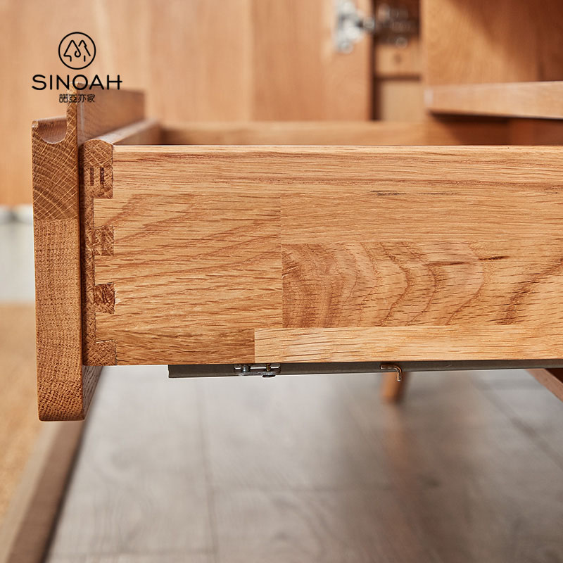 Den miljøvennlige åpne malingen holder den ekte teksturen til hvit eik godt. Du kan oppleve friskheten og åpenheten i naturen hjemme. Samtidig har hvit eik en sterk bæreevne. Selv om utformingen av linjene er enkel, er funksjonene svært praktiske og størrelsen lang. Oppbevaringsplassen kan romme mat med forskjellige spesifikasjoner og dekke alle livets behov. Den åpne oppbevaringen kan ikke bare lagre ting, men også dekorere livet. Med flere skuffer kan det inneholde diverse, noe som gjør hjemmet renere