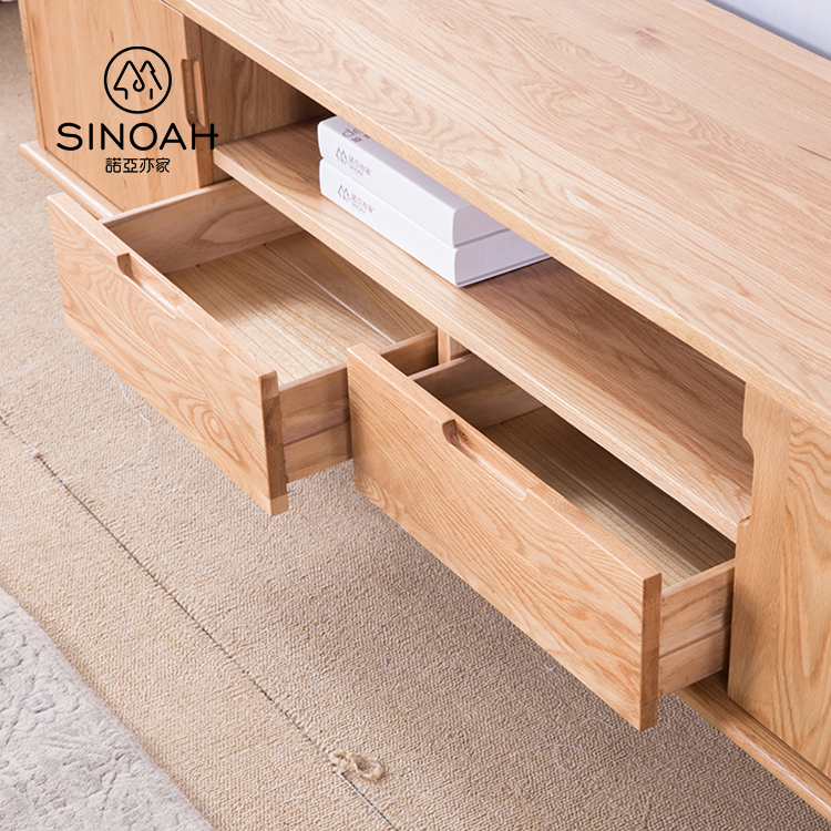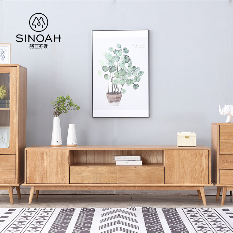 Sinoaher en profesjonell leder China Nordic Oak Range Nice TV Cabinet produsent med høy kvalitet og rimelig pris. Pent TV-skap, et enkelt og fasjonabelt TV-skap i heltre, er laget av hvit eik, naturlig tre og miljøvernmaling, med vakker tekstur, fin og jevn tekstur, og sterk lagringskapasitet. Treglidebane med unik design og åpenbare utseendeegenskaper: bunnplaten er 20 mm mer enn sidepanelet