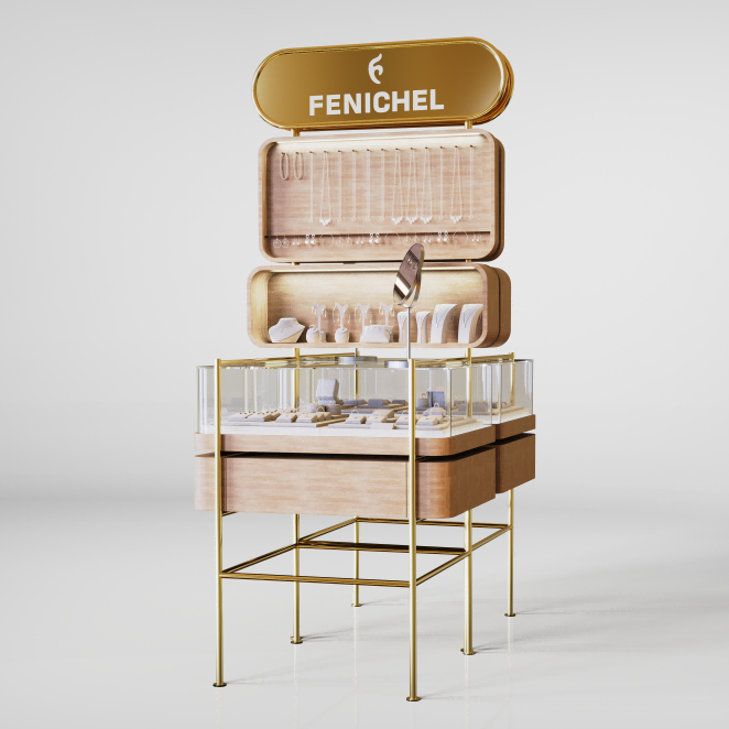 Denne displayhyllen er laget av premium nordamerikansk eik, og har en robust og holdbar konstruksjon som sikrer lang levetid. De naturlige trekornene og varme tonene i eiken gir et snev av eleganse til ethvert rom, noe som gjør det til en perfekt passform for butikkene, utstillinger eller til og med hjemmet ditt.