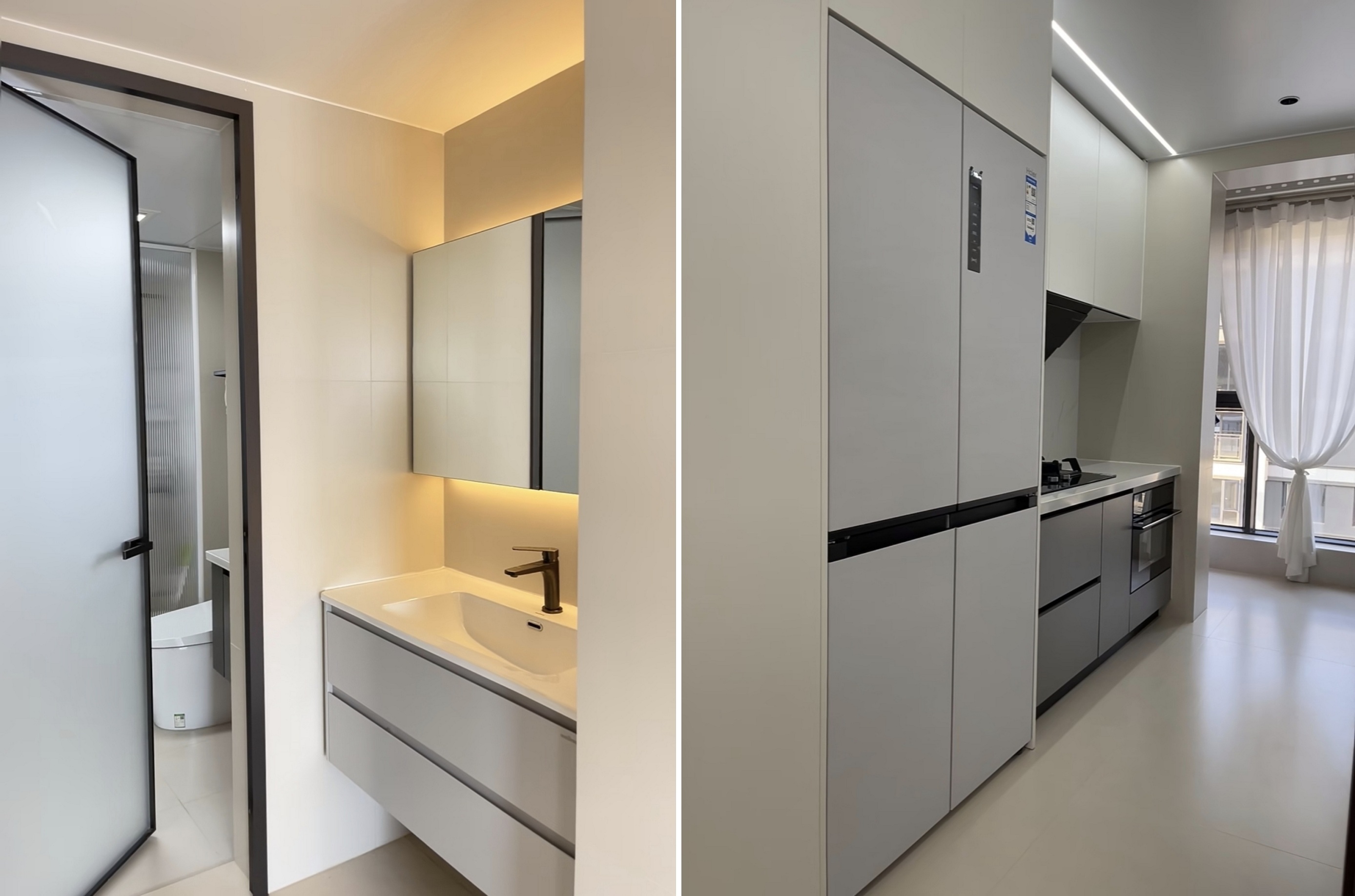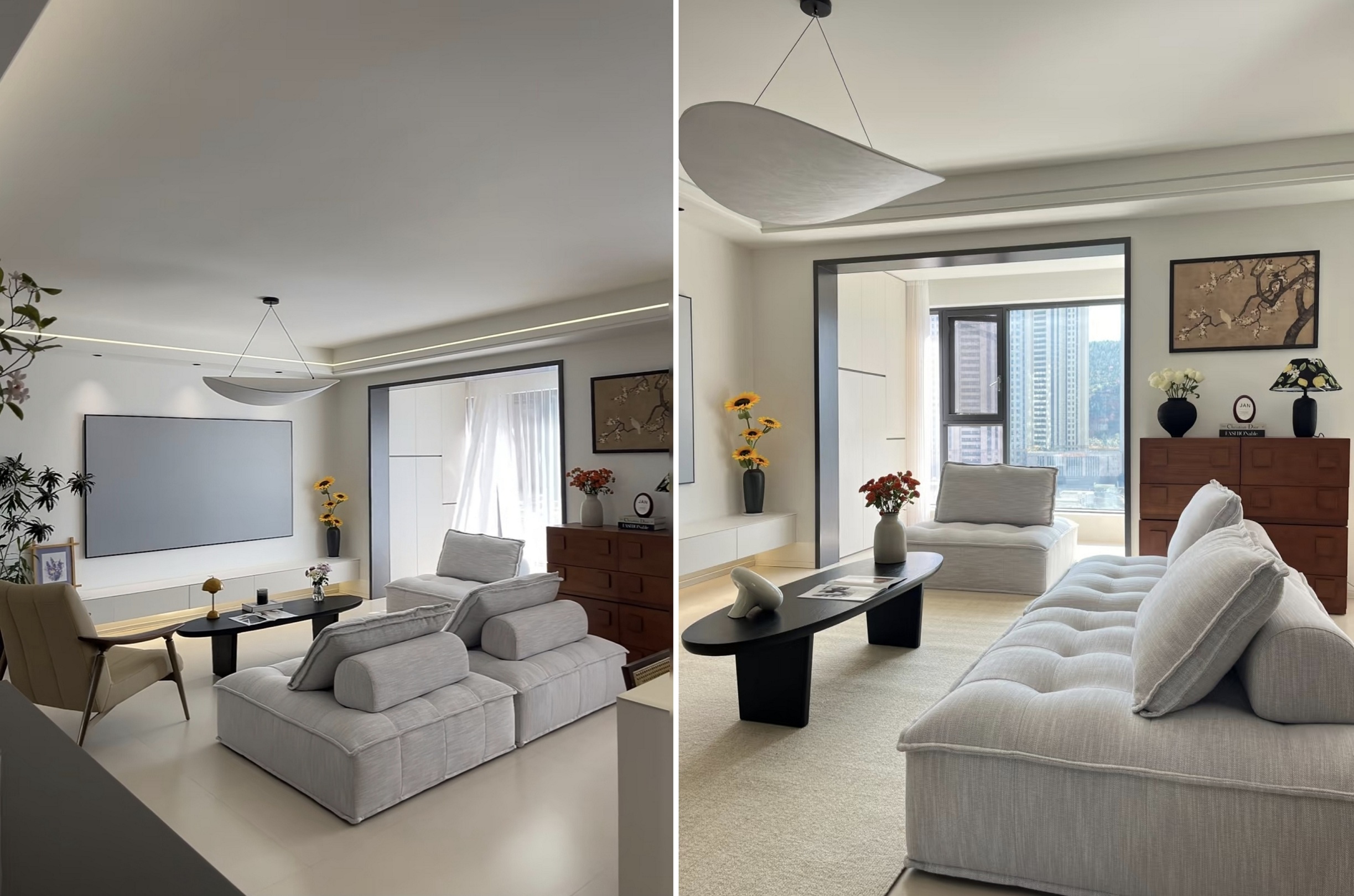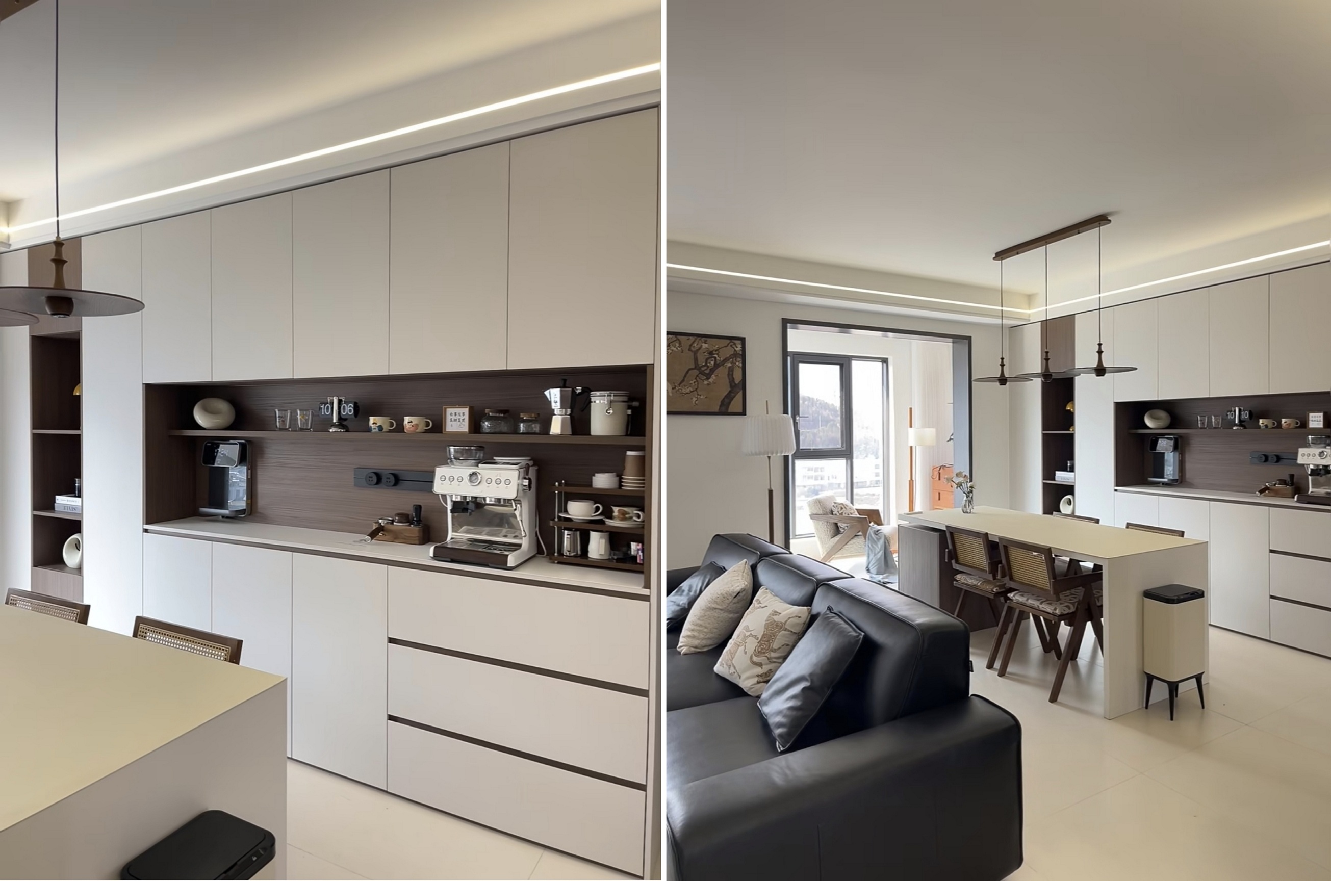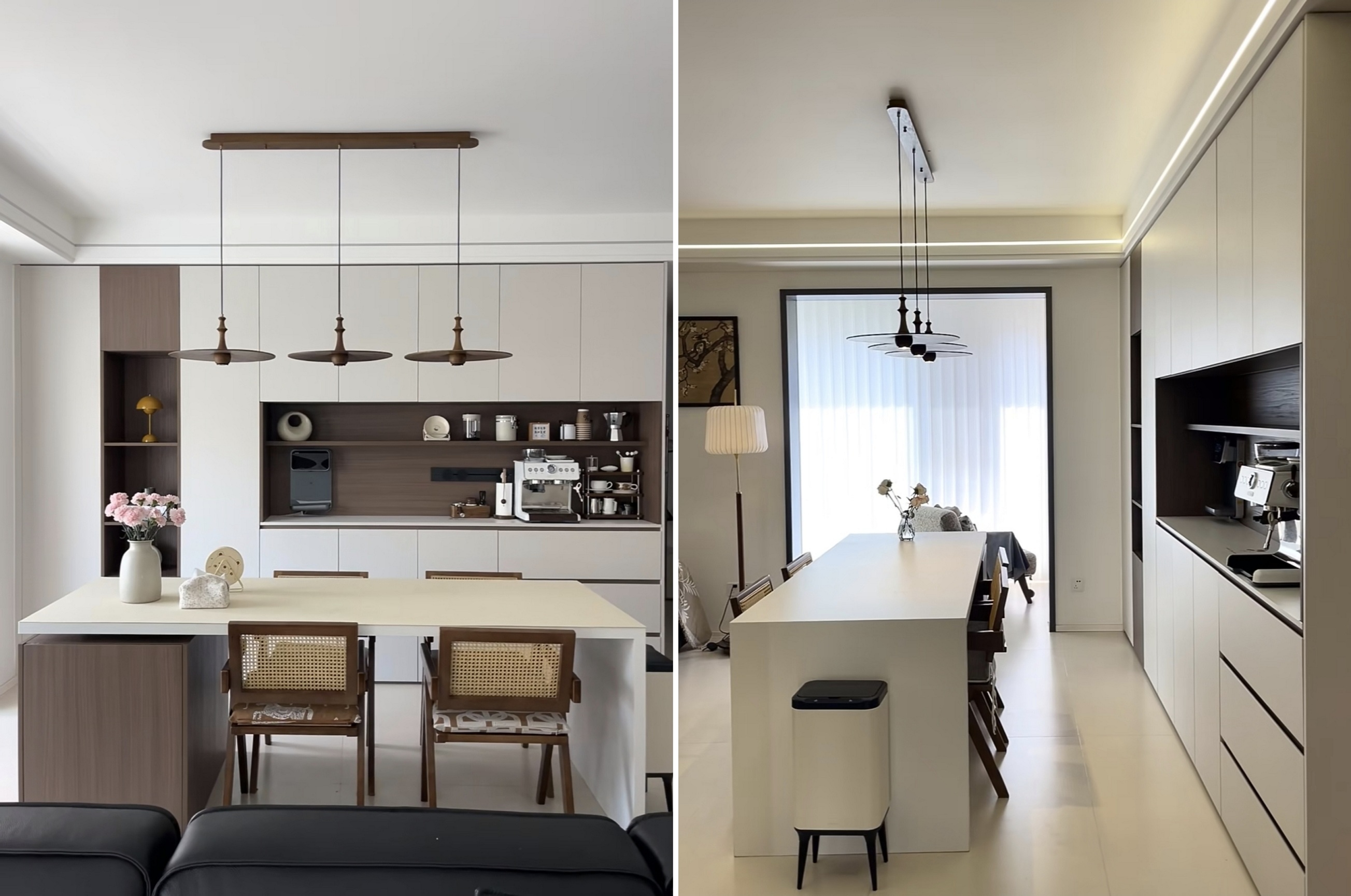 Veggene er malt med en ren og allsidig Linghua White Latex -maling som samsvarer med alle møbler. Det forener den generelle tonen i hjemmet, og skaper en romslig og lys visuell effekt.
